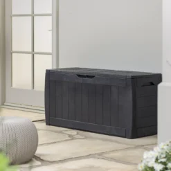 Keter City Box Graphite Wood Effect Flat Garden Storage 113L