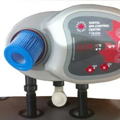 - The portable control unit houses the filtration system and operates outside of the spa, so no valuable spa space is used up