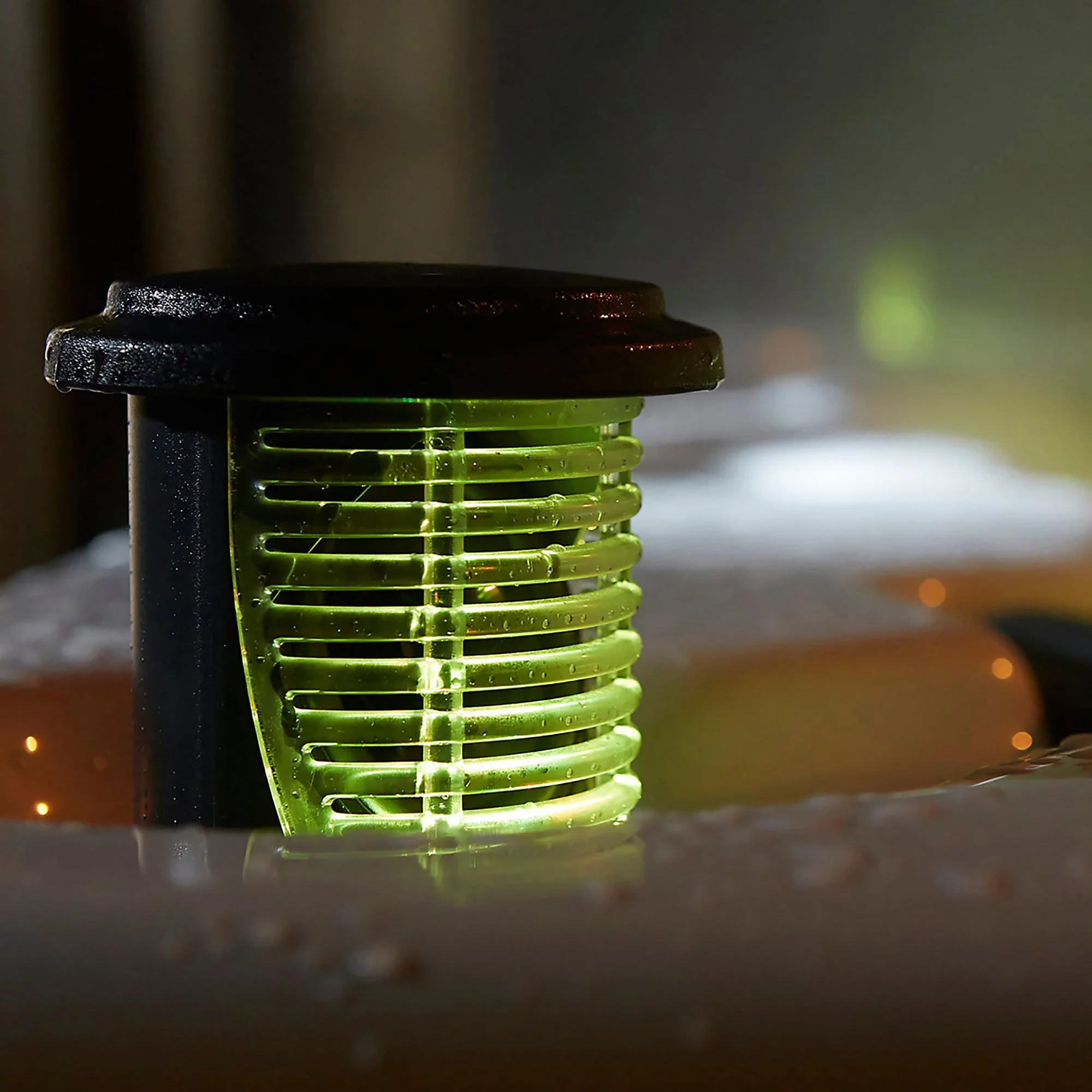 - Bluetooth enabled music system including 2x waterproof retractable speakers. Built-in high quality amplifier delivering high volume with clear acoustics & Aurora™ premium LED mood lighting system