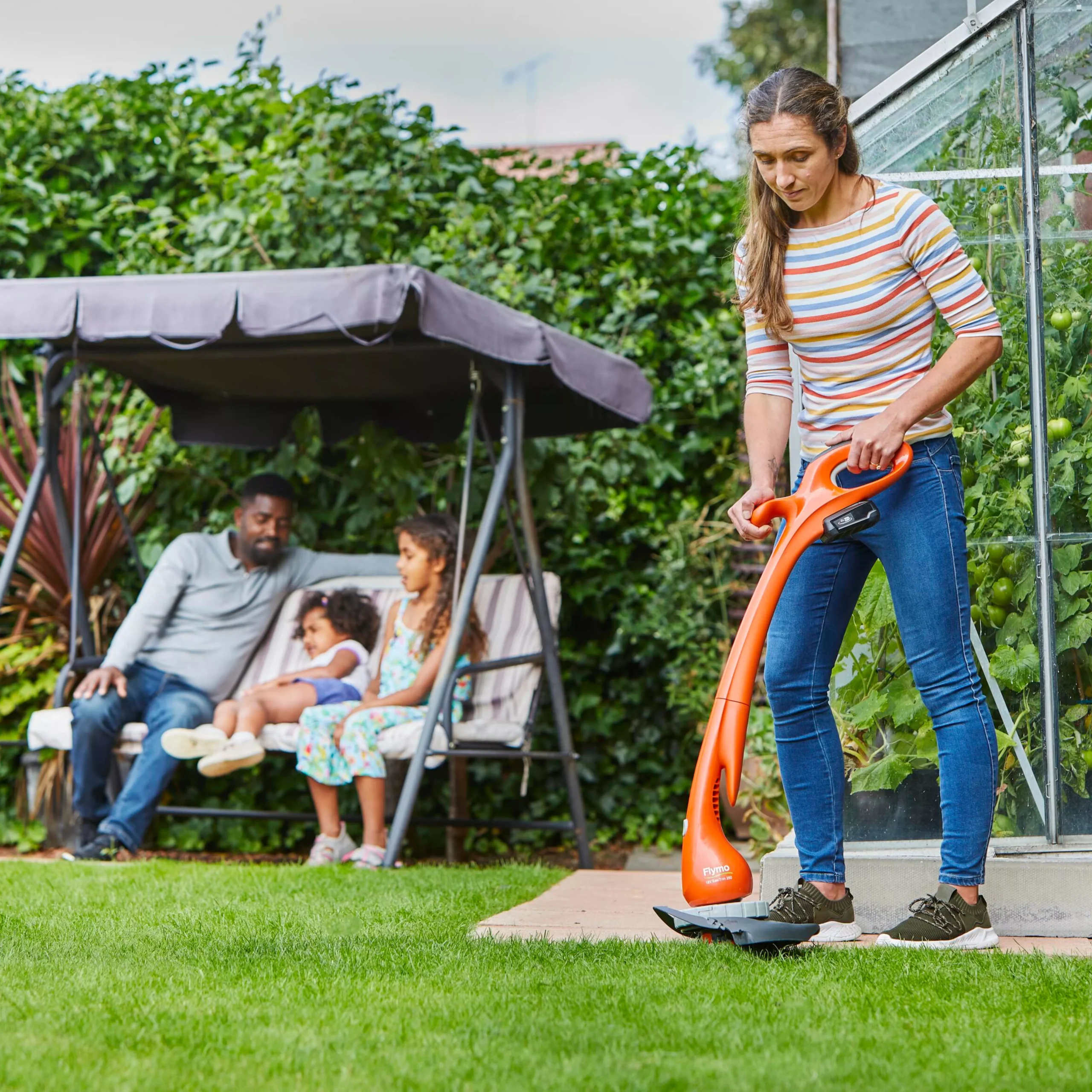 Perfect for small to medium gardens, the Flymo EasiTrim 2.0 KIT cordless grass trimmer utilises an 18V Power4All battery to make trimming easy with no restricting cord, for greater freedom and flexibility. With a 25cm cutting width and an automatic 1.5mm line feed you can easily trim the edges of your lawn and cut through weeds with ease. Switch between trimming and edging modes with the simple click of a button, the edging feature allows or a neater finish around the edges of your lawn, while the edging wheel helps keep the trimmer stable while working. Lightweight and ergonomic helps to reduce fatigue whilst working so you can enjoy trimming up to 110m2 of lawn on a single charge.