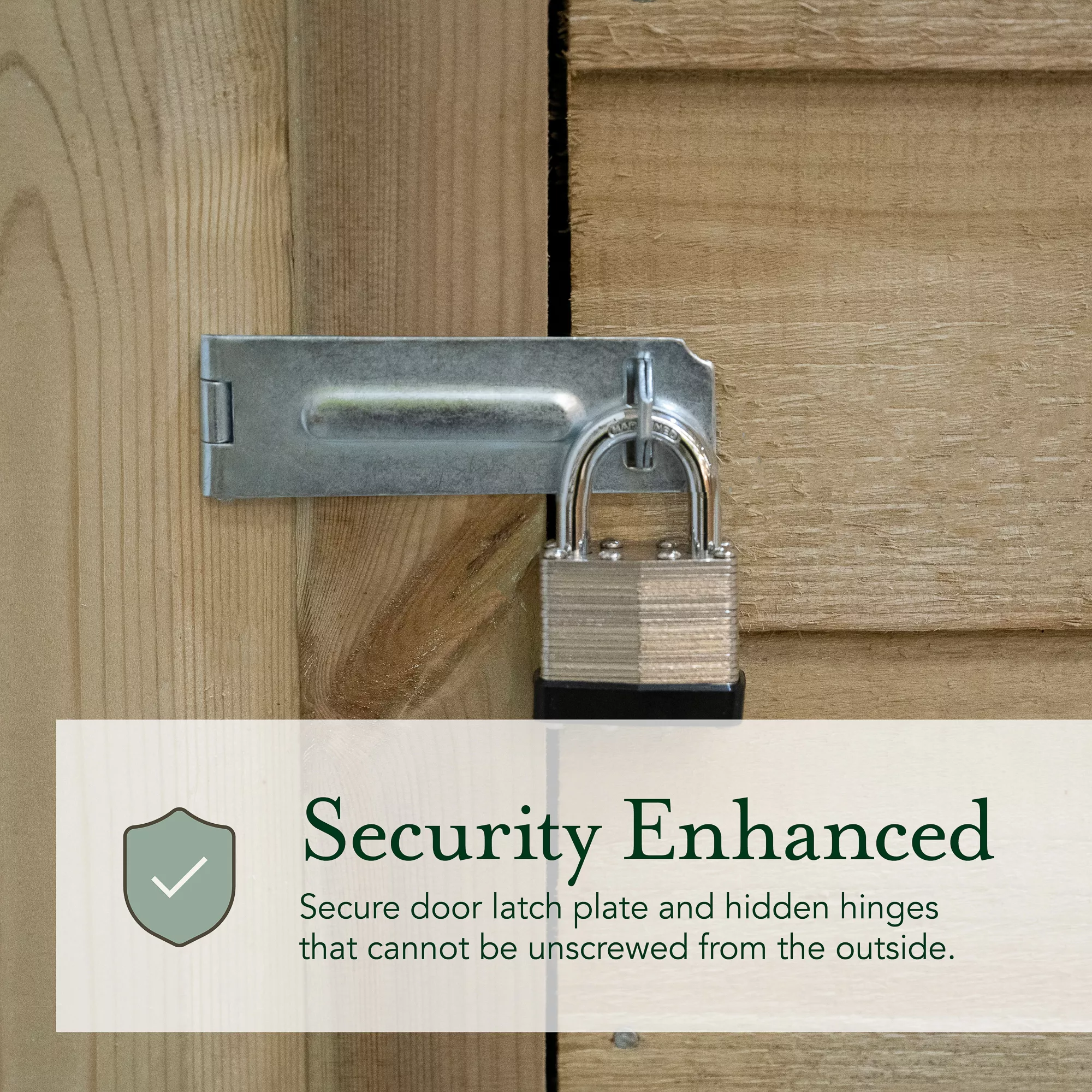 - A practical garden workshop, made with traditional straight cut overlap timber boards