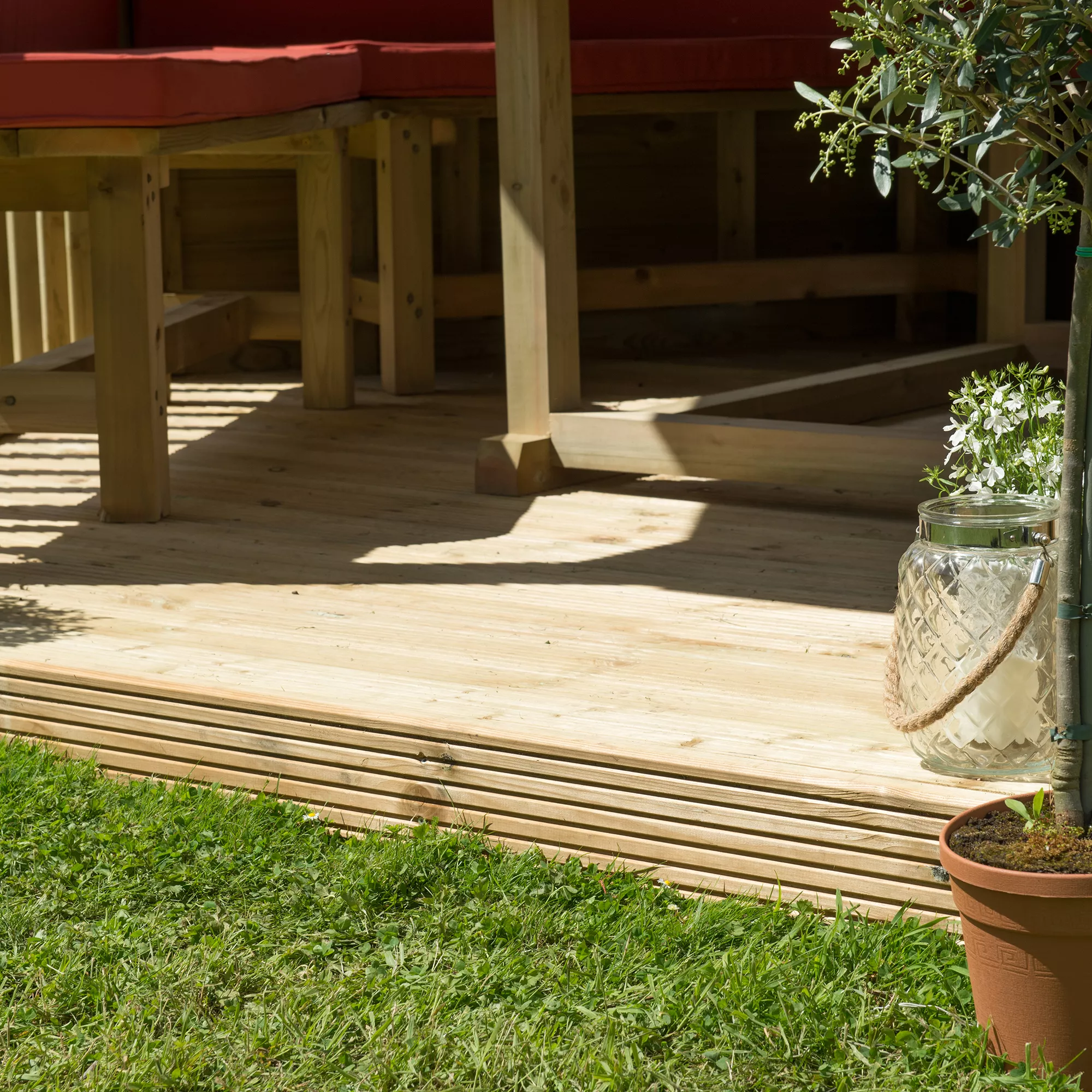 Create the perfect space with al fresco dining then the 4m Hexagonal Wooden Garden Gazebo with Timber Roof from Forest for a beautiful outdoor area. This Gazebo comes with installation included, making the creation of your ideal garden dining area easier than you think. This Gazebo comes with just the decked base so you can furnish to your taste. A furnished version is also available which includes a custom-made table, wooden bench seats and cushions which can seat up to 15 adults or 20 children. Side curtains made from quality outdoor canvas (available in a choice of 3 colours; green, terracotta or cream) are also available as an optional extra.