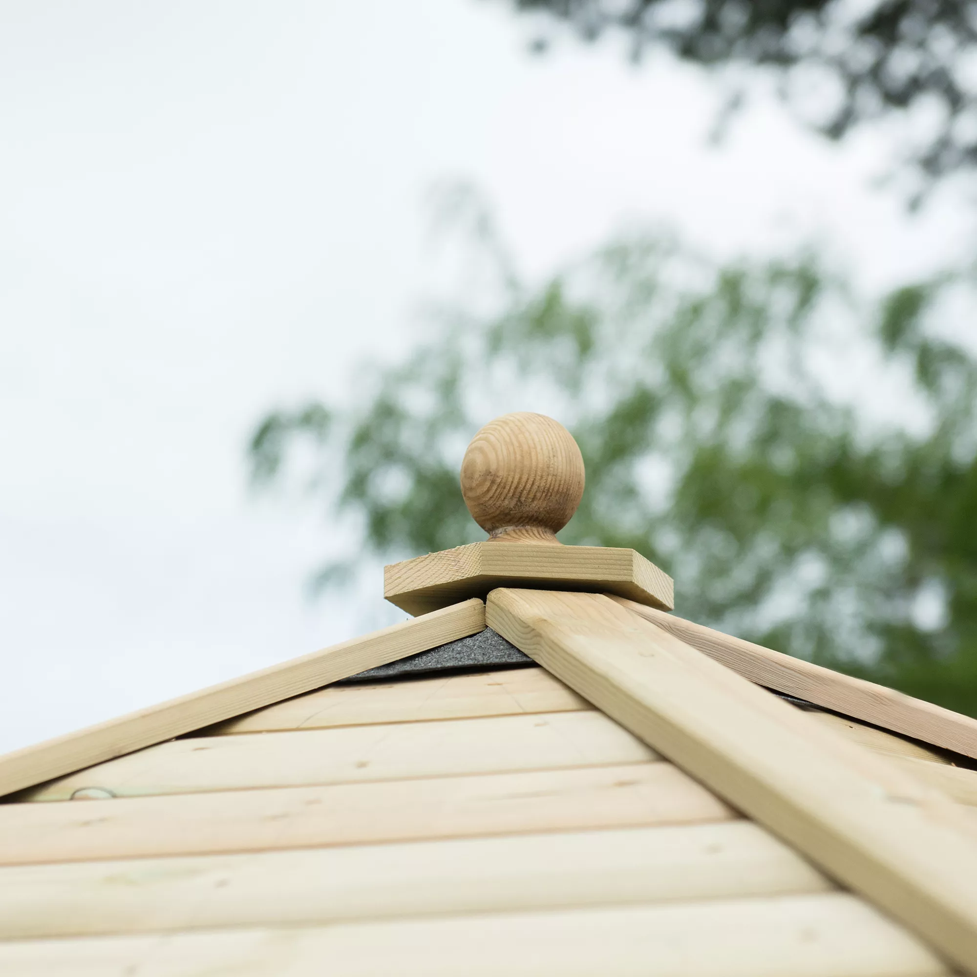 - The 4m Hexagonal Wooden Garden Gazebo with Timber Roof is perfect for a larger outdoor dining area