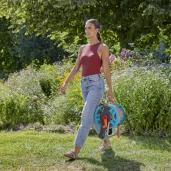 The Gardena Basic Wall Hose Reel Set (25 m) is ideal solution for watering plants, flowers and beds. The handle crank can be used for convenient and easy rewinding of the hose, whilst the angled hose connection prevents kinking. The Anti-Splash feature and water-tight connection, avoids leakages, conserving water.