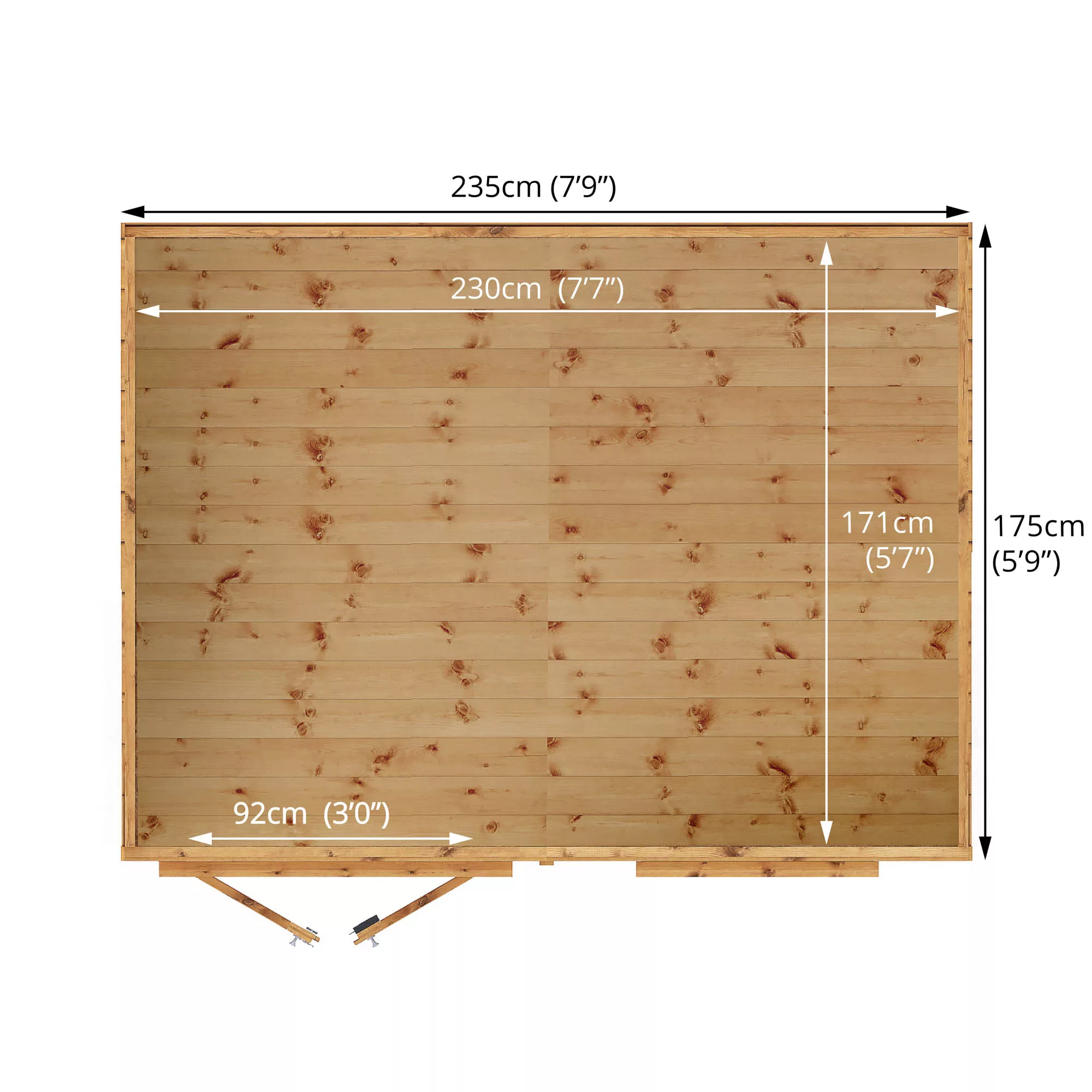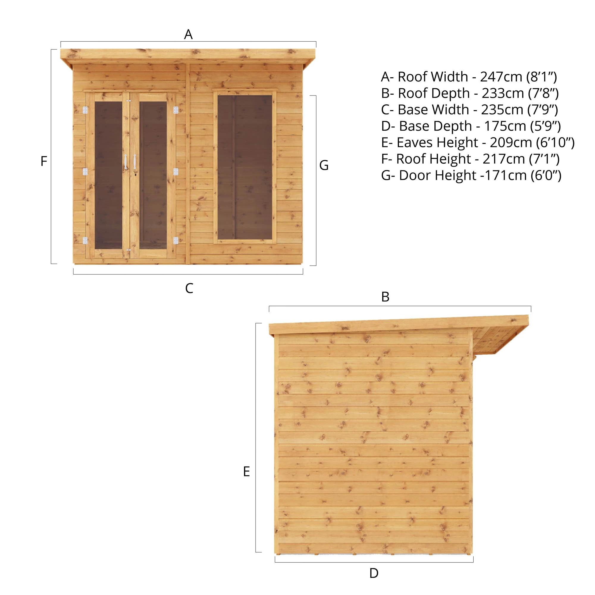 Sit back and relax inside the 8 x 6 Maine Summerhouse. With fully glazed french doors and three fixed full-length windows, all glazed with shatterproof styrene, the interior of this summerhouse is bright, airy and welcoming. The doors are finished with brushed chrome handles and hinges for a contemporary aesthetic. This stylish pent design is perfect for those looking for a place to entertain guests, or as a hobby or craft room. Perhaps you’re in need of somewhere to relax with a cup of tea and a good book? Fill the space with comfy chairs, a coffee table and some indoor plants to create the perfect garden retreat!