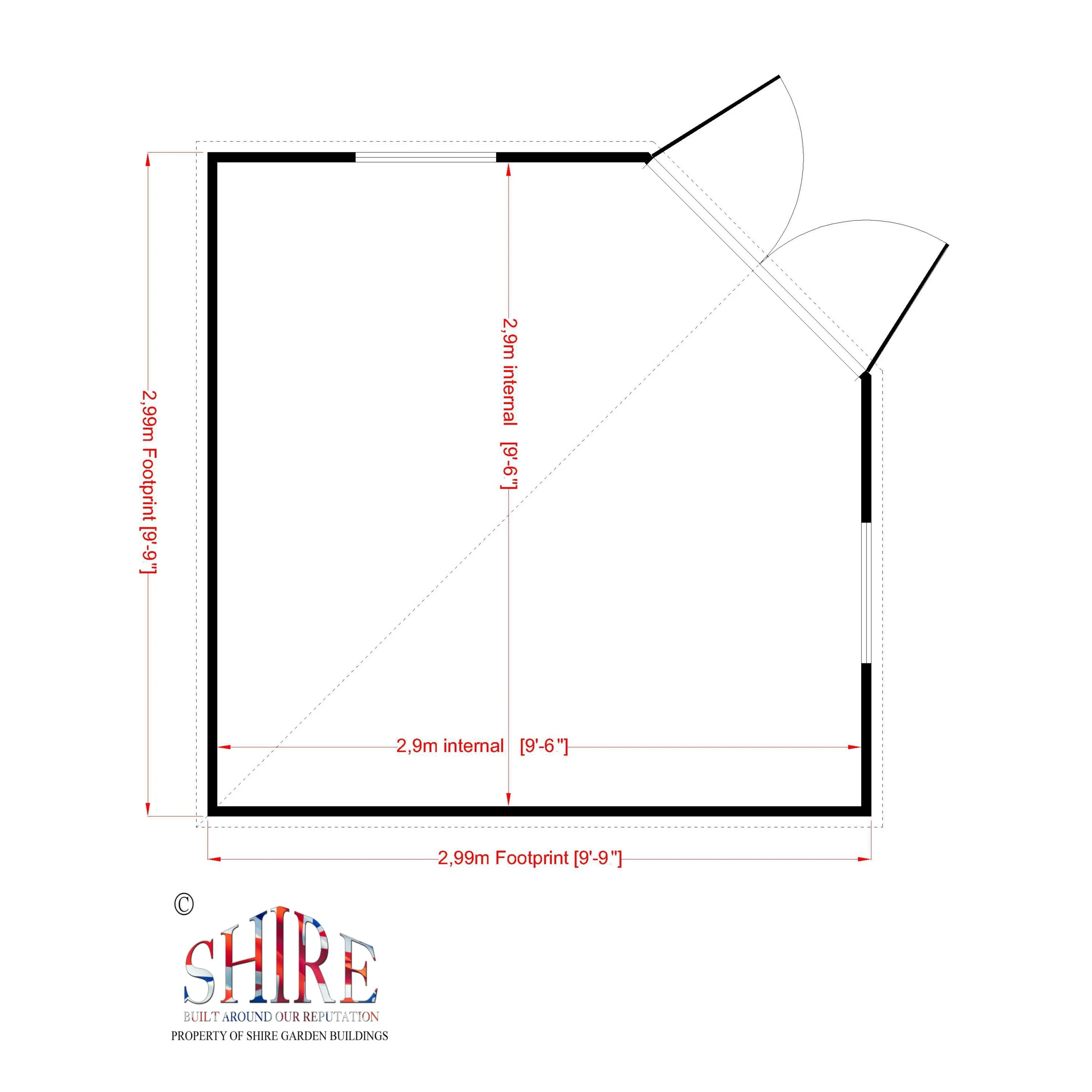 This Hampton 10×10 summerhouse with toughened glass is perfect for use as a summerhouse, workshop or extra storage space. Assembly required.